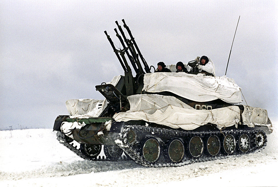 Артиллерийская установка "Шилка" Сибирского военного округа во время учений на полигоне Алабино