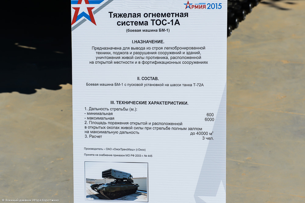 На форуме "Армия-2015" была выставлена тяжелая огнеметная система ТОС-1А "Солнцепек".