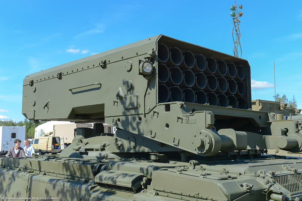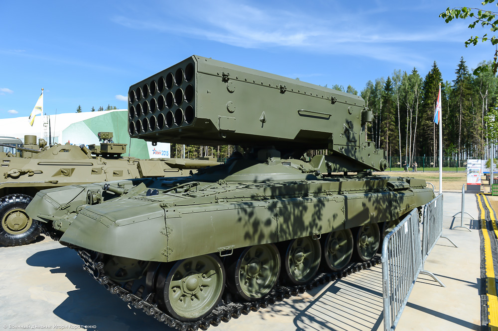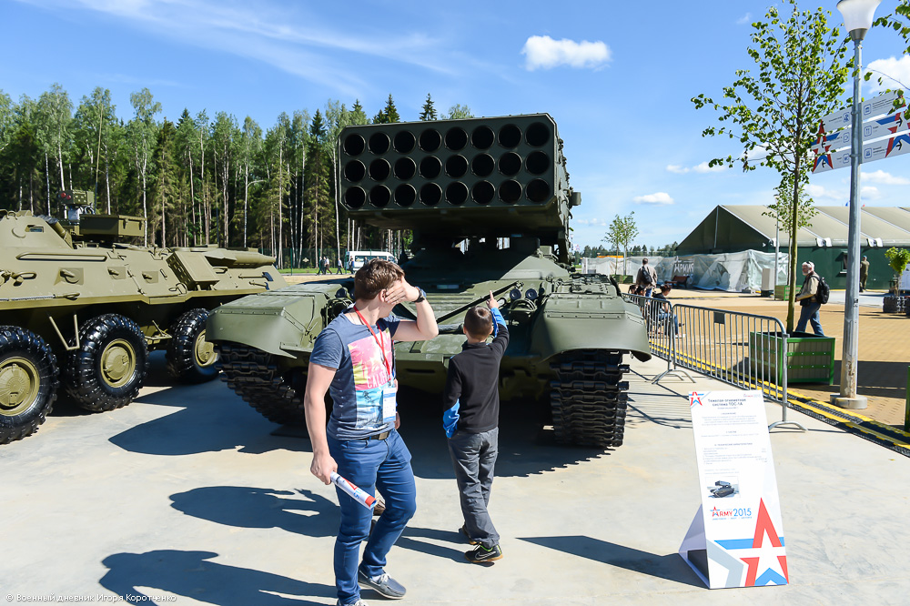 На форуме "Армия-2015" была выставлена тяжелая огнеметная система ТОС-1А "Солнцепек". Страшное оружие, конечно, для противника, по которому его применяют.