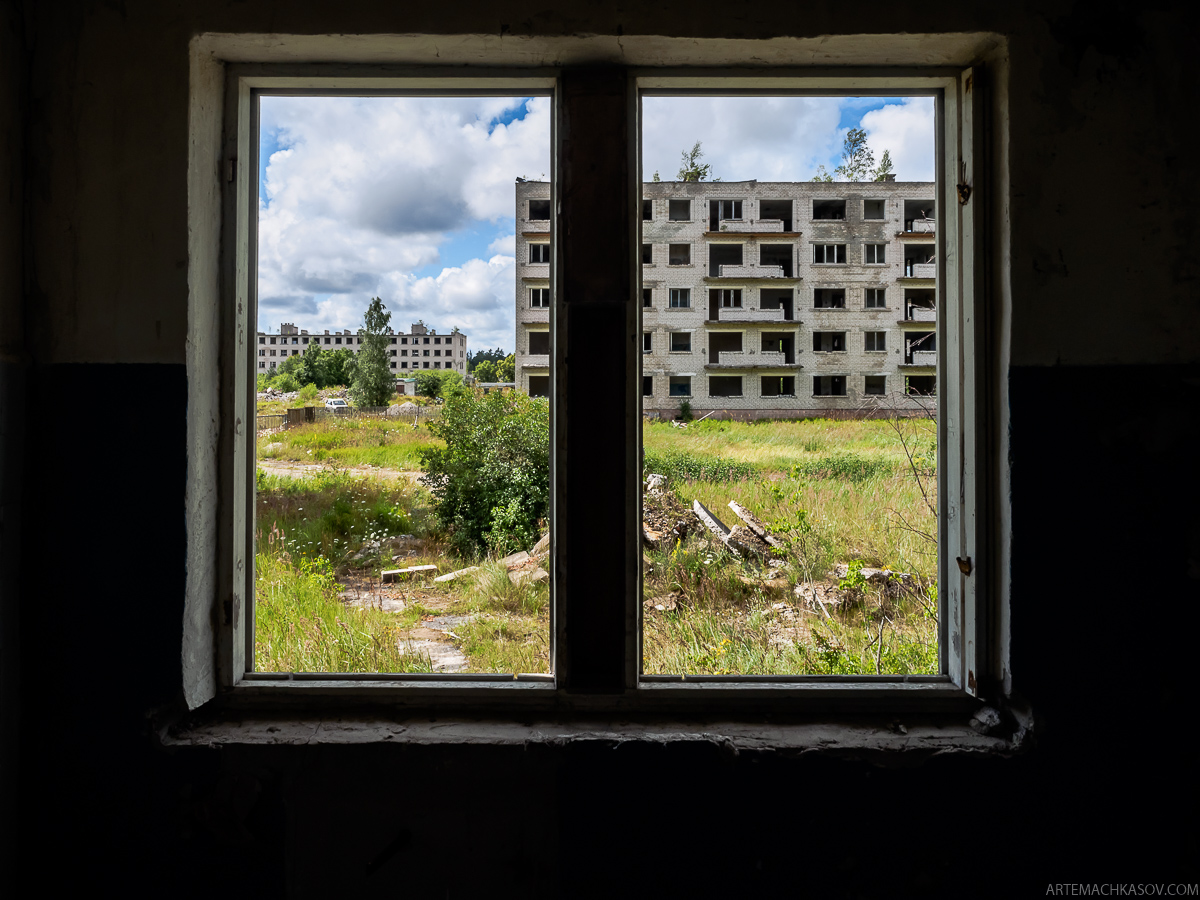 После вывода советского контингента из обретшей суверенитет Латвии, военный городок быстро превратился в город-призрак. Мародеры расхитили все - нет не только металлических труб и перил, но даже оконных рам. Впрочем, брошенные военные городки в нашем Забайкалье местные жители разбирали более основательно - по кирпичику, по бетонным плитам... но не будем отвлекаться от темы.