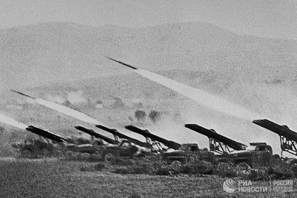 Реактивные установки залпового огня ("Катюши") наносят удар по врагу