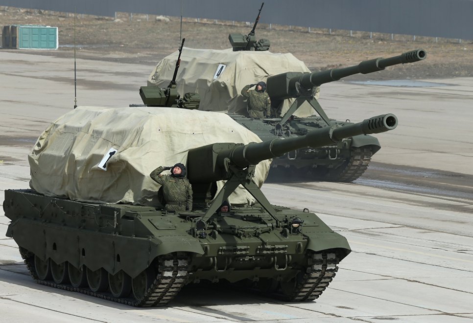 Самоходная артиллерийская установка "Коалиция-СВ" во время репетиции парада Победы в Московской области