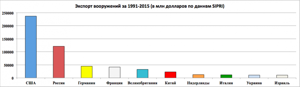 Интересны также данные SIPRI о стоимости продаж оружия крупнейшими игроками рынка.